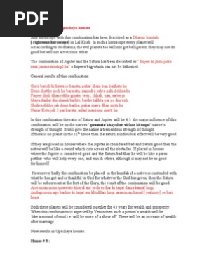 Upachaya Houses - Netchanting | Blog Jan 9, 2016 ... Upachaya means 'growth', 'advancement', 'increment'. Upachaya houses are 3, 6, 10, and 11. Upachaya houses are the house which improve its ... Upapada Lagna – Freedom Vidya The 7th house is 3rd from the 5th house showing it is upachaya from the 5th , meaning it will make your kula grow. The 12th house is 6th from the 7th which is also upachaya for the 7th house, which means it will make sex increase, it is therefore connected to the pleasures of the bed, the place to be alone to grow the 7th house, to mature it ... Upachaya Houses - Astrosaxena Upachaya Houses - Houses # 3, 6, 10 and 11 are known as Upachaya houses, means they improve with time and start giving good results after the age of 35 years. Upachaya & Kama Houses in Vedic Astrology - YouTube Mar 27, 2012 ... Upachaya & Kama Houses in Vedic Astrology · Key moments. View all · Key moments · Description · Key moments. View all · Comments 73 · Transcript ...
