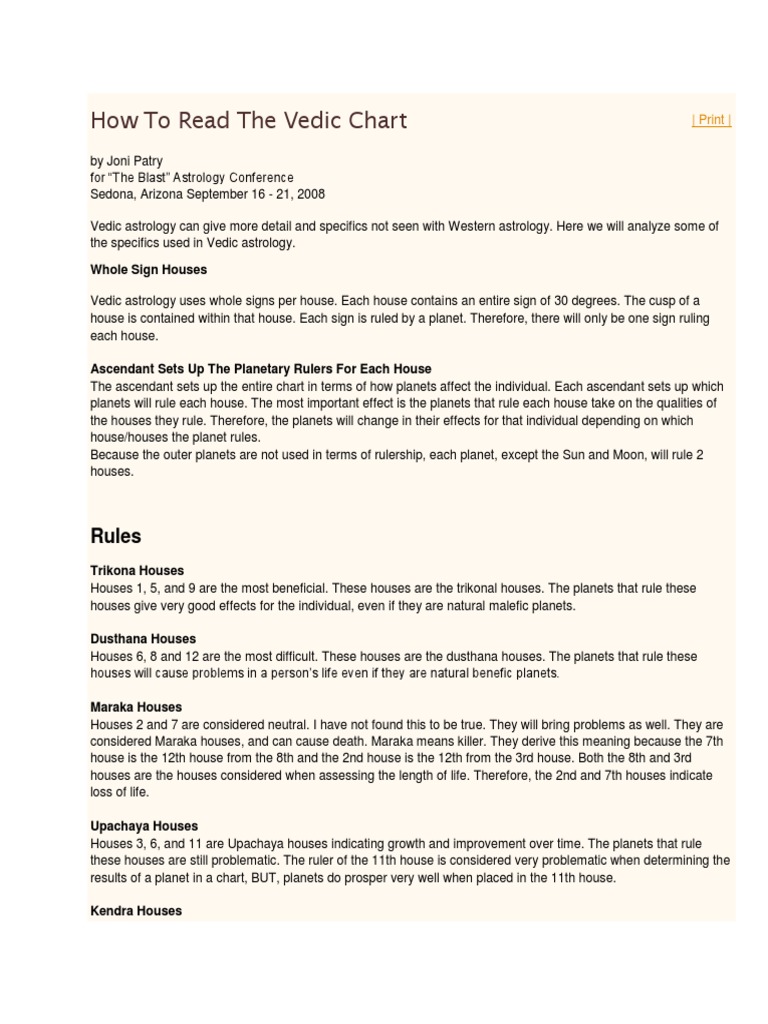 Sixth House In Astrology: What To Know About The House Of Health Oct 08, 2022 · “In Vedic astrology, we call it a upachaya house, which means [it gets] stronger with time,” she says. She notes that malefic, slow-mover Saturn does really well in the sixth house, as opposed ...